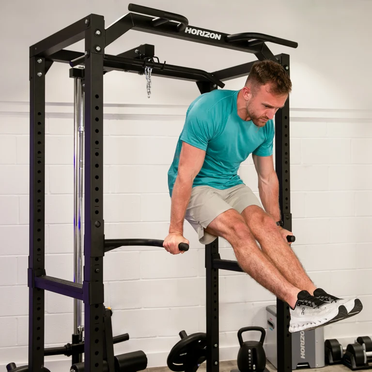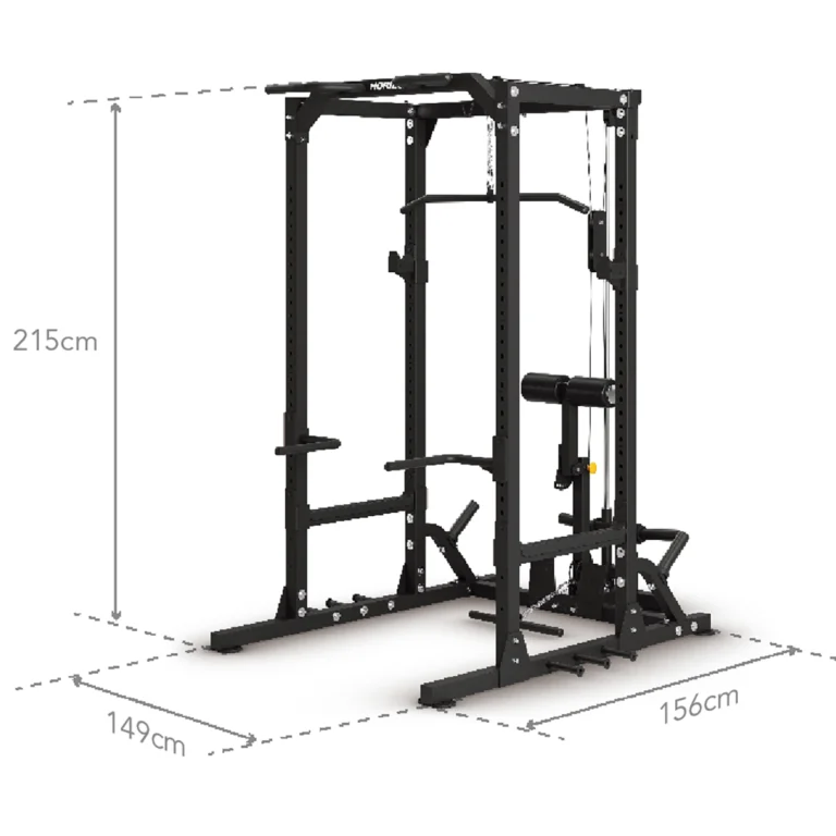 25段階の高さ調整が可能なパワーラックは、マルチグリップ・プルアップバー、Jフック、バンドペグ、トライセップ・ディップ・バーを搭載し、多彩なトレーニングを実現します。