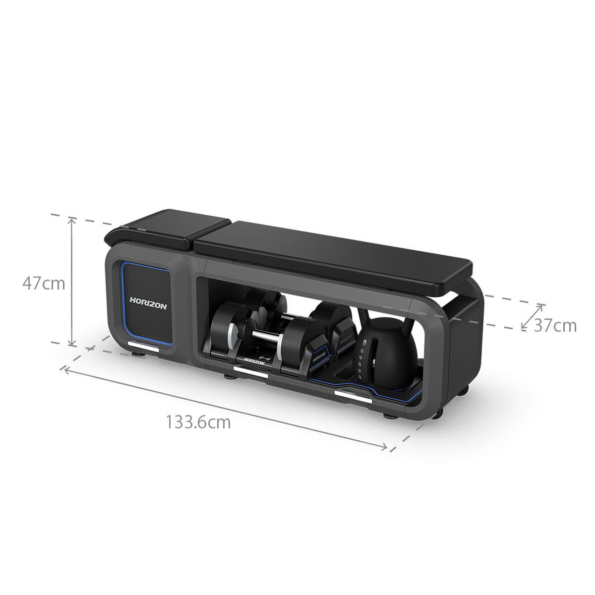 2024年度グッドデザイン賞を受賞。HORIZONベンチは、都市生活者のニーズに応える多機能・省スペース設計のホームジムソリューションで、洗練されたデザインが魅力です。