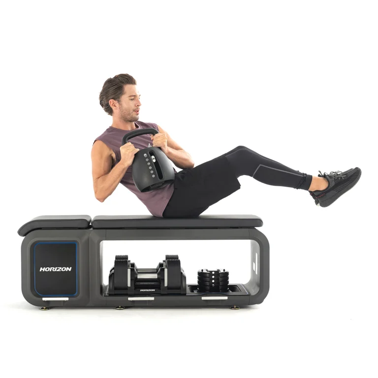 5段階調整の背もたれ&細かく重量調整できるダンベル・ケトルベルで最適なトレーニングを実現