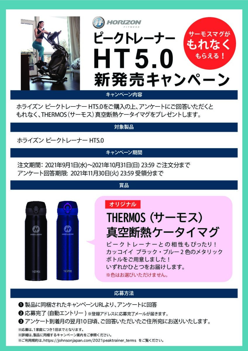 『HT5.0』の販売を記念して、アンケートご回答でもれなくホライズンオリジナル THERMOS(サーモス)真空断熱ケータイマグをプレゼントするキャンペーンを実施中。